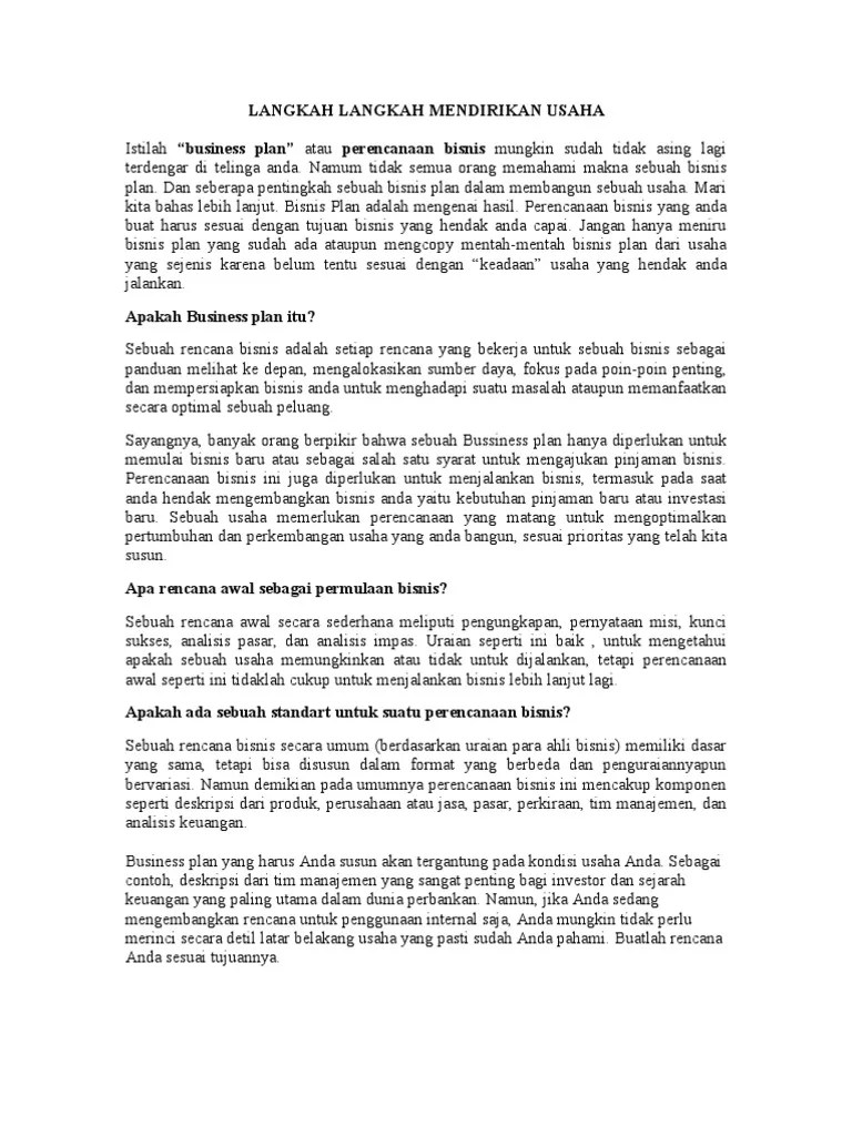 Bisnis plan atau rencana bisnis sendiri secara umum bisa diartikan. Sebagi contoh, ada dua orang calon wirausahawandatang di sebuah . Para pelaku bisnis yang memiliki badan usaha seperti perseroan terbatas, persekutuan komanditer (cv), firma, koperasi merupakan contoh badan . Contoh penulisan latar belakang bisnis plan kedai kopi "elegan":. Bab i pendahuluan 1.1 latar belakang melihat pasar roti yang semakin berkembang, maka peluang untuk mengolah makanan tra.